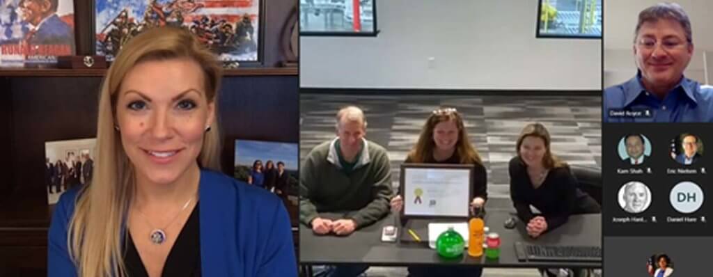 The Export Achievement Certificate was presented by U.S. Rep. Beth Van Duyne. She commended Kick for taking care of her employees and community during the pandemic while continuing to grow the business. Van Duyne stated that BuzzBallz/Southern Champion is an example for companies across the country.